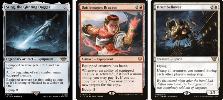 Untapping Ragost is where the real value lies, and if you haven’t gotten a copy of Sting, the Glinting Dagger yet (which I’ve recommended many times since release) then now’s the time. Battlemage’s Bracers finally gets a chance to shine here too, while Drumbellower is a natural add if you’re looking to cook up a storm. Plargg Dean of Chaos // Augusta Dean of Order and White Plume Adventurer are considerable too if you’re going deep.