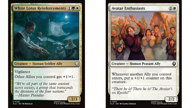 In my testing I have played both a “true” 5c Allies deck, with multi-color rares and a ton of fixing lands, AND a heavily white Allies deck which played 3 copies of Gather the White Lotus supplemented by a green splash and hybrid white costs like Sokka, Lateral Strategists.