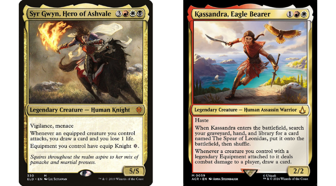 Just look at the difference between Syr Gwyn and Kassandra. The set-up phase in a Syr Gwyn deck takes many turns, as you need to reliably get to six to eight mana to resolve the Commander. Kassandra, meanwhile, comes down with Haste and can start drawing you cards and tagging people with Commander Damage as early as turn three. Hell, with the right draws, you can knock a player out on turn three. In that way, Kassandra doesn’t care about those stages of the game – she’s straight into the mid-game as soon as you drop her. (It’s also why I couldn’t seem to build a list that wasn’t B4).