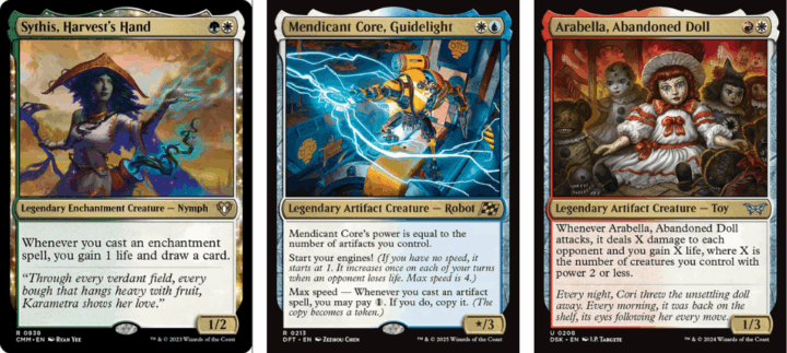 With Commanders costing as little as two mana and having big resource advantage or even entire gameplans written on them, you’re hitting the mid-game that much sooner. A Sythis deck can keep her hand topped up while ramping with Auras; Mendicant can get you to a Max Speed of 2 the moment it comes down provided you played a one drop attacker; Arabella can start shredding life totals as early as turn four if you curve out.