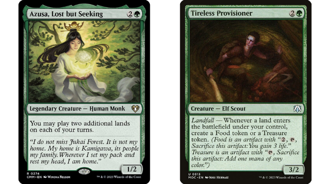 Landfall wise, you could lean into more land drops and ways to make mana. Azusa and Tireless Provisioner are favorites of mine.