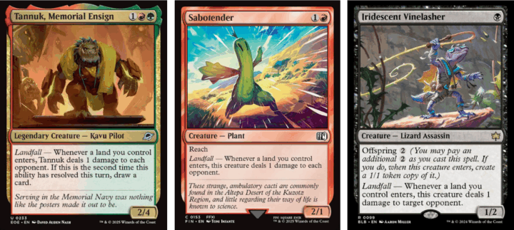 Landfall pingers is another way to play this build, and Tannuk from the main set, Sabotender, and Iridescent Vinelasher are all superb as a package.
