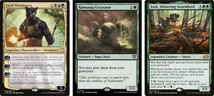 First up, we’re getting lands we sacrifice or discard back. Windgrace is the OG Jund lands Commander, and so slotting him in seemed natural. He can pitch lands to achieve basically the same level of draw as our Commander, and his {-3} gives up back two lands straight into play – not even tapped!