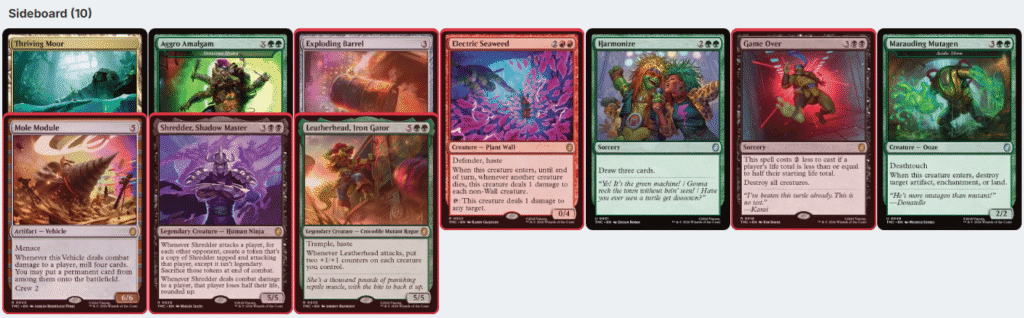 The cards we’re taking out are in the sideboard on Moxfield. They’re either poor synergies, or we have access to better options. Some of them are pretty good cards, but we don’t need them all.